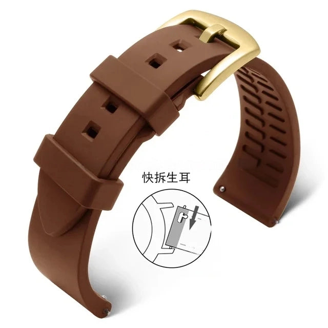Λουράκι Σιλικόνης Καφέ Πολύ Μαλακό Απλό 20mm Χιλιοστά με Χρυσό Κούμπωμα Quick Release