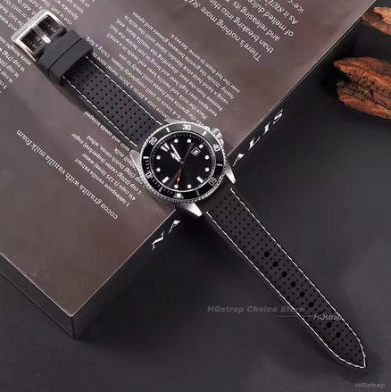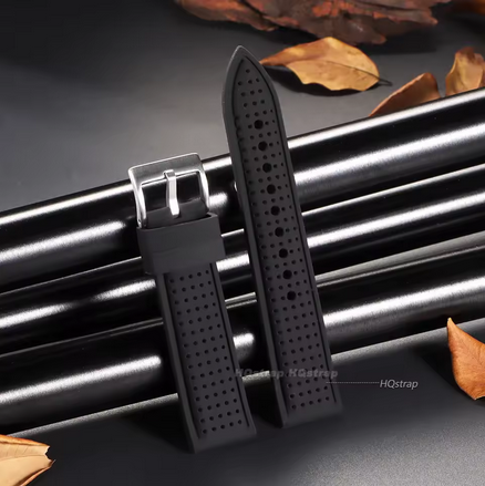 Μαύρο Πολύ Μαλακό Λουράκι Σιλικόνης Με τρύπες Με Ραφή 20mm Τυπου Rally Χιλιοστα