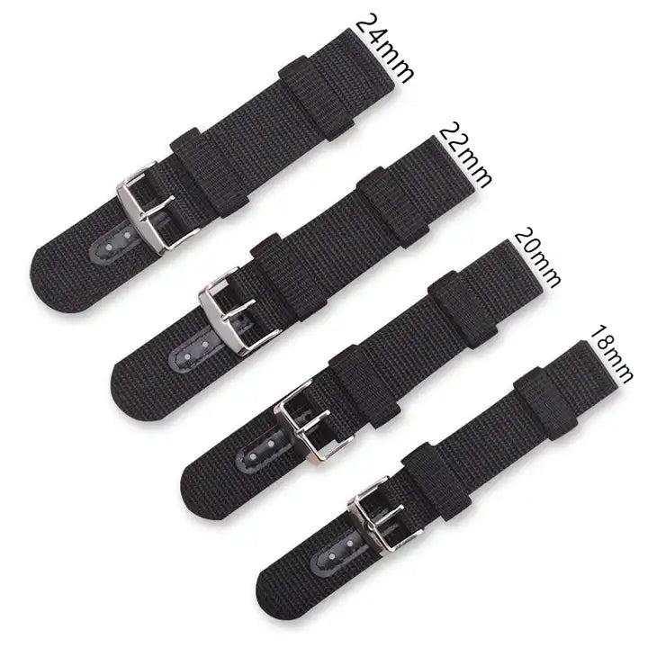 Αυτό το υφασμάτινο νάιλον λουρί Έχει ενισχυμένο δέρμα PU ( δερματίνη ) για τις τρύπες που θα μπει η καρφίτσα της πόρπης. Εξαιρετική ποιότητα και πολύ ανθεκτικό. Με την αγορά σας σας χαρίζουμε το εργαλείο εξαγωγής ράβδων ελατηρίου για την ενστάλαξή σας