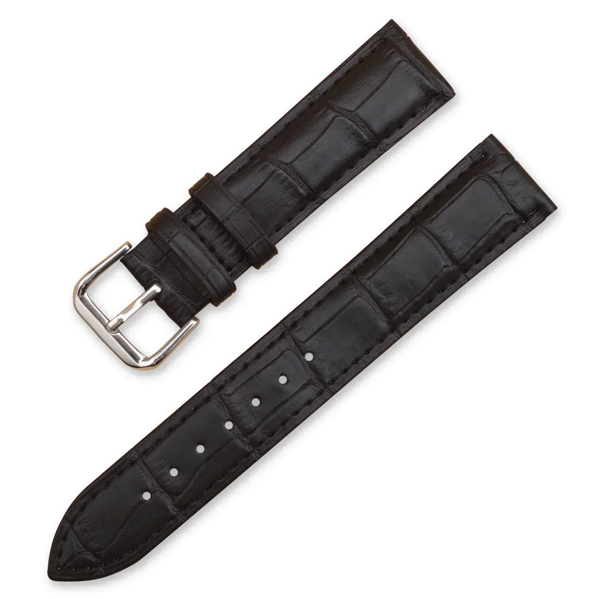 Δερμάτινο λουράκι 18mm Χιλιοστά Croc (Κροκόδειλου) σε μαύρο χρώμα με ασημί αγκράφα