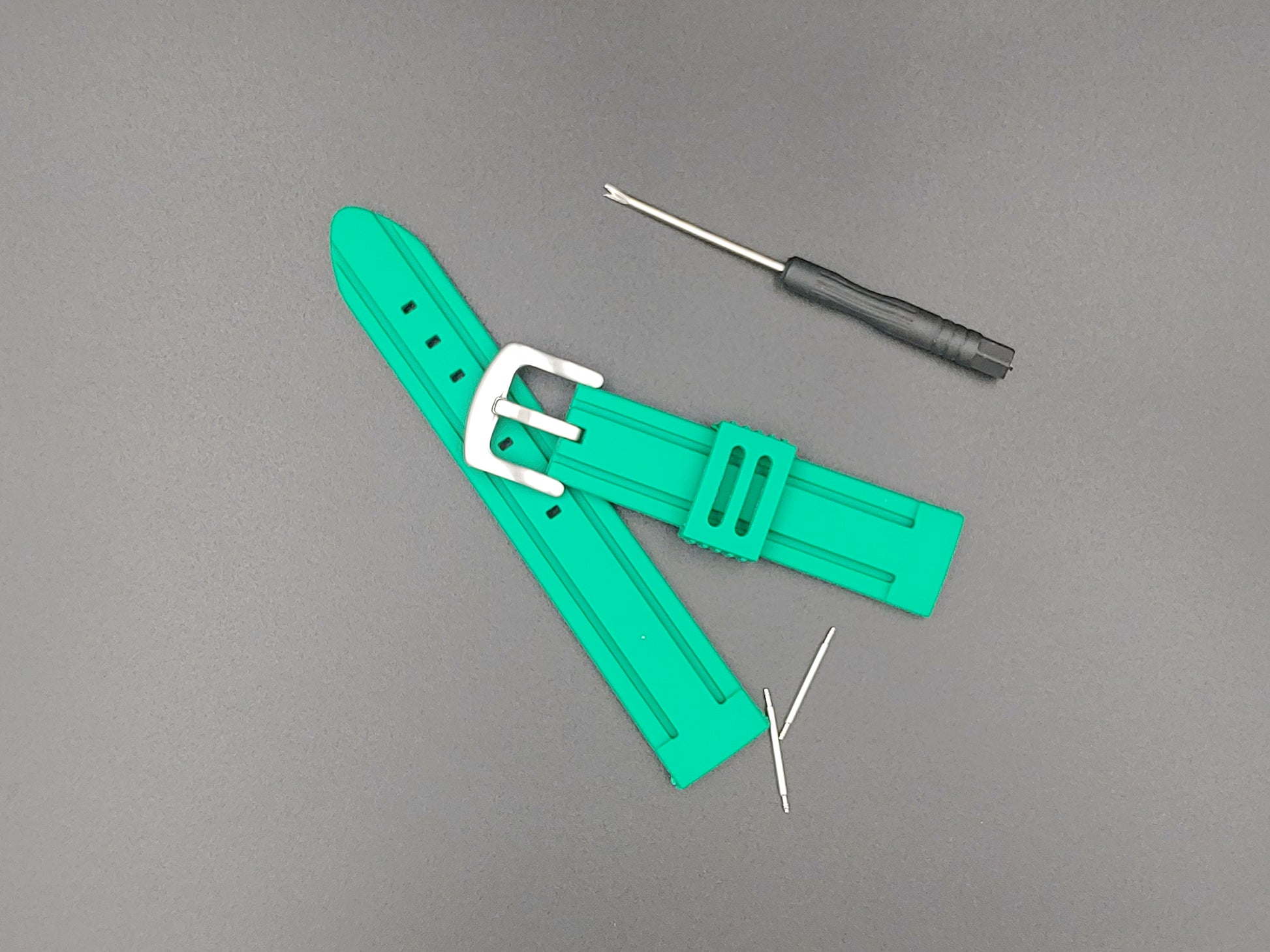 Ένα υπέροχο λουράκι σιλικόνης με ραβδώσεις, εξαιρετικά μαλακό και ανθεκτικό, διαθέσιμο σε Πράσινο χρώμα και το διαθέσιμο πλάτος είναι 20 mm