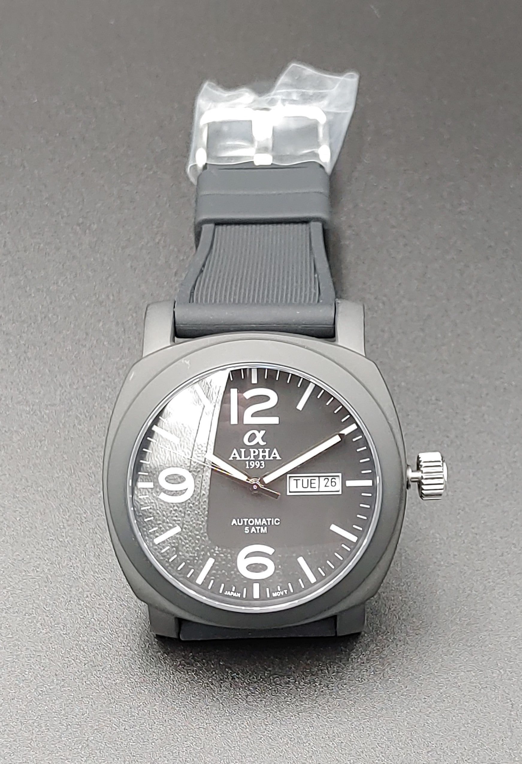 Alpha α 1993 Αυτόματο Μαύρο Ματ Αυτόματο Με Μαύρο Λουράκι Σιλικόνης και Μαύρο Καντράν με Ημερομηνία και Ημέρα