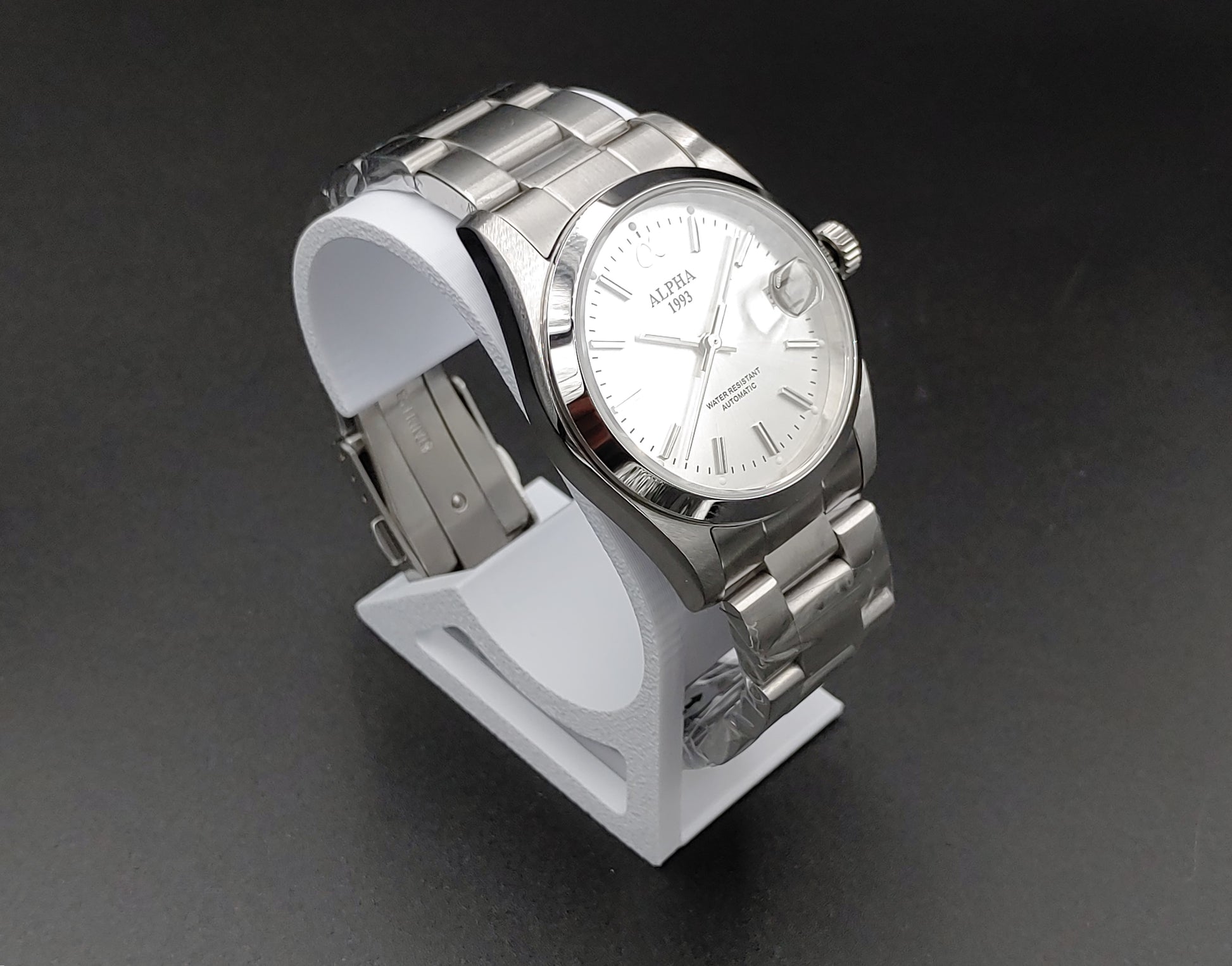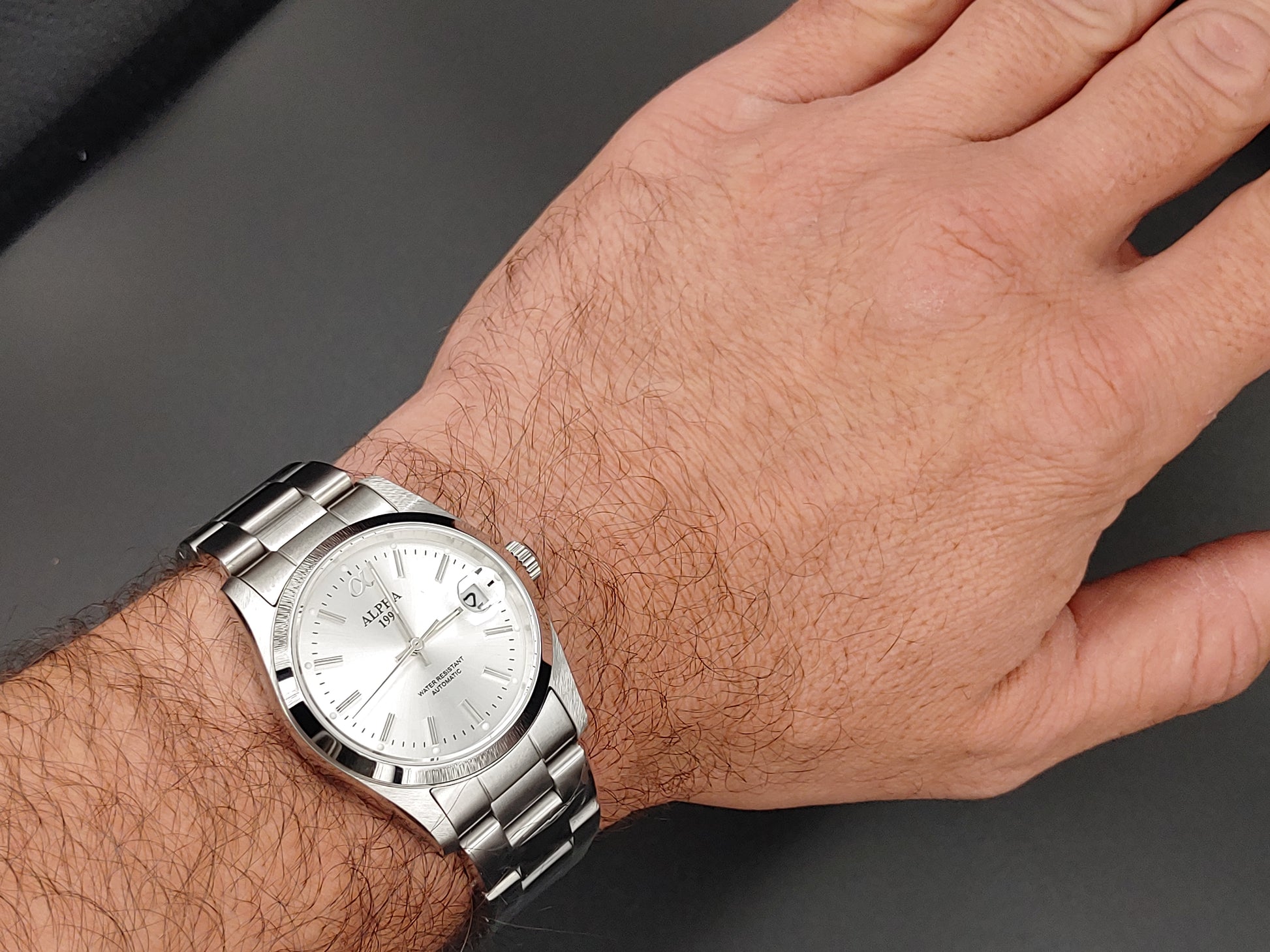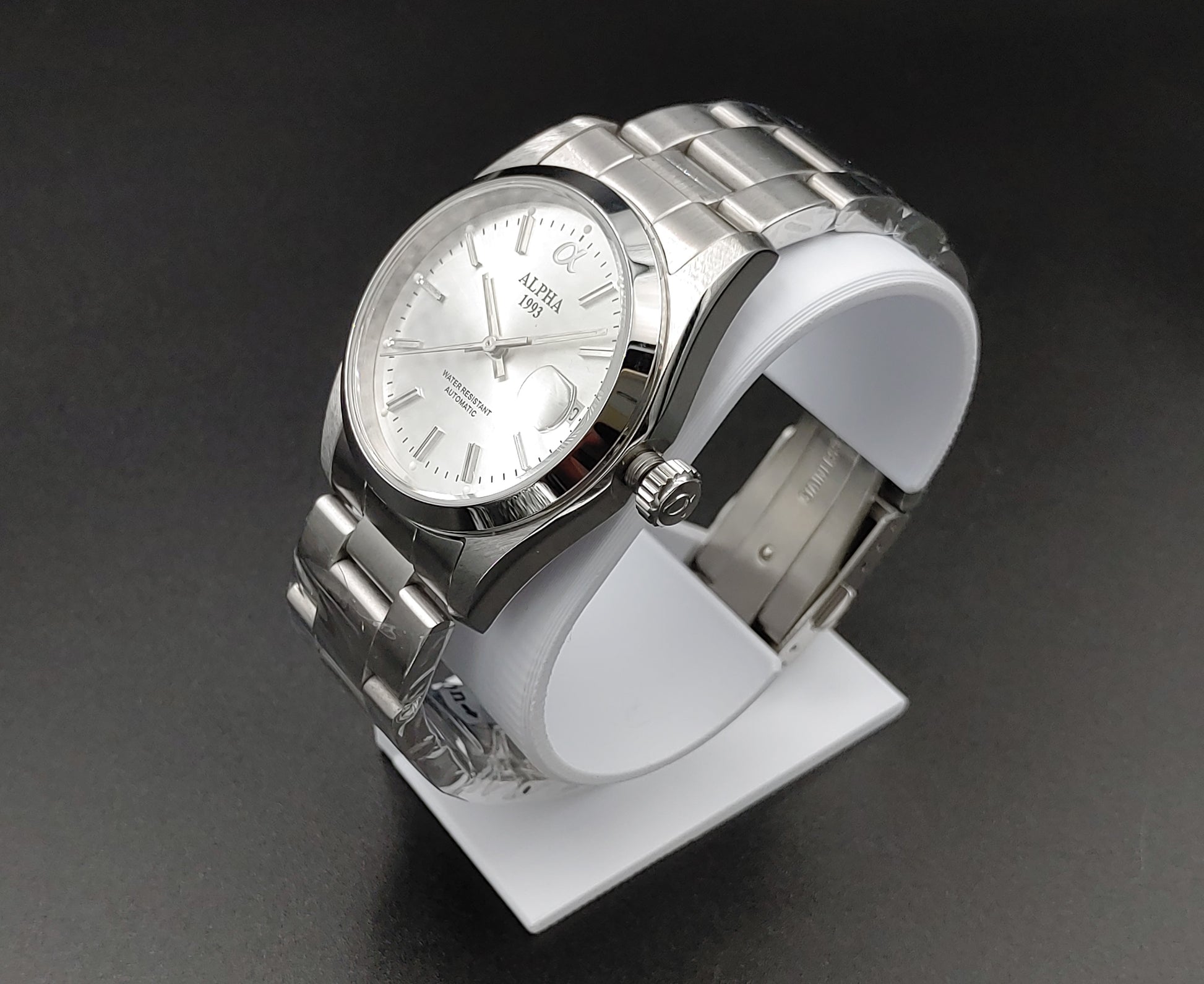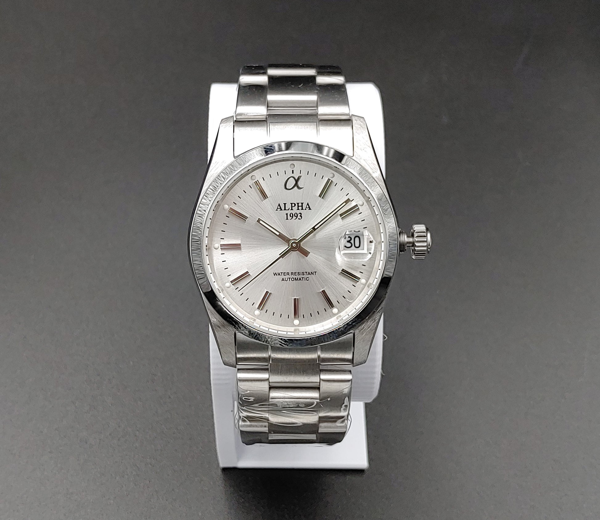 Alpha α 1993 Αυτόματο Ασημί Μεταλλικό Μπρασελέ με Ασήμι Καντράν Ένδειξη Ημερομηνίας