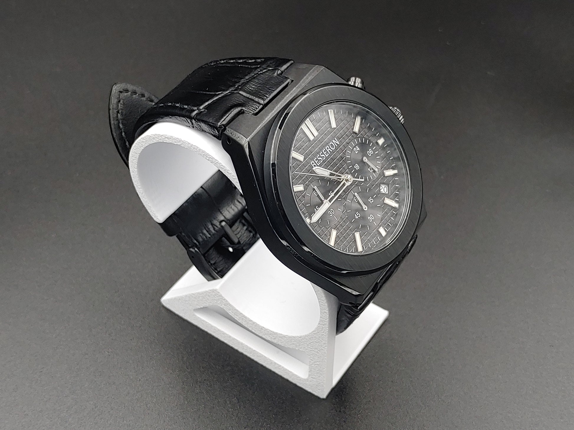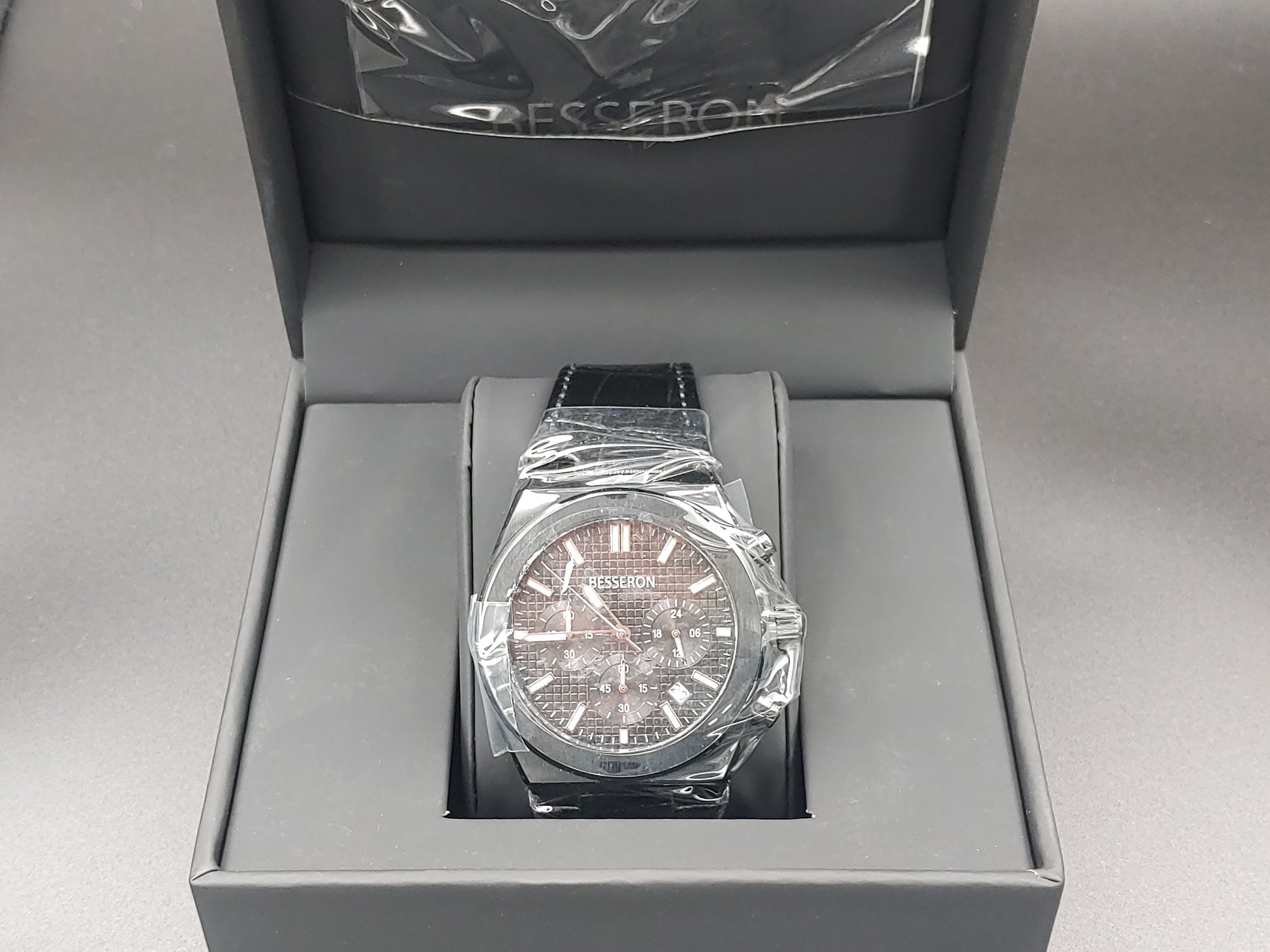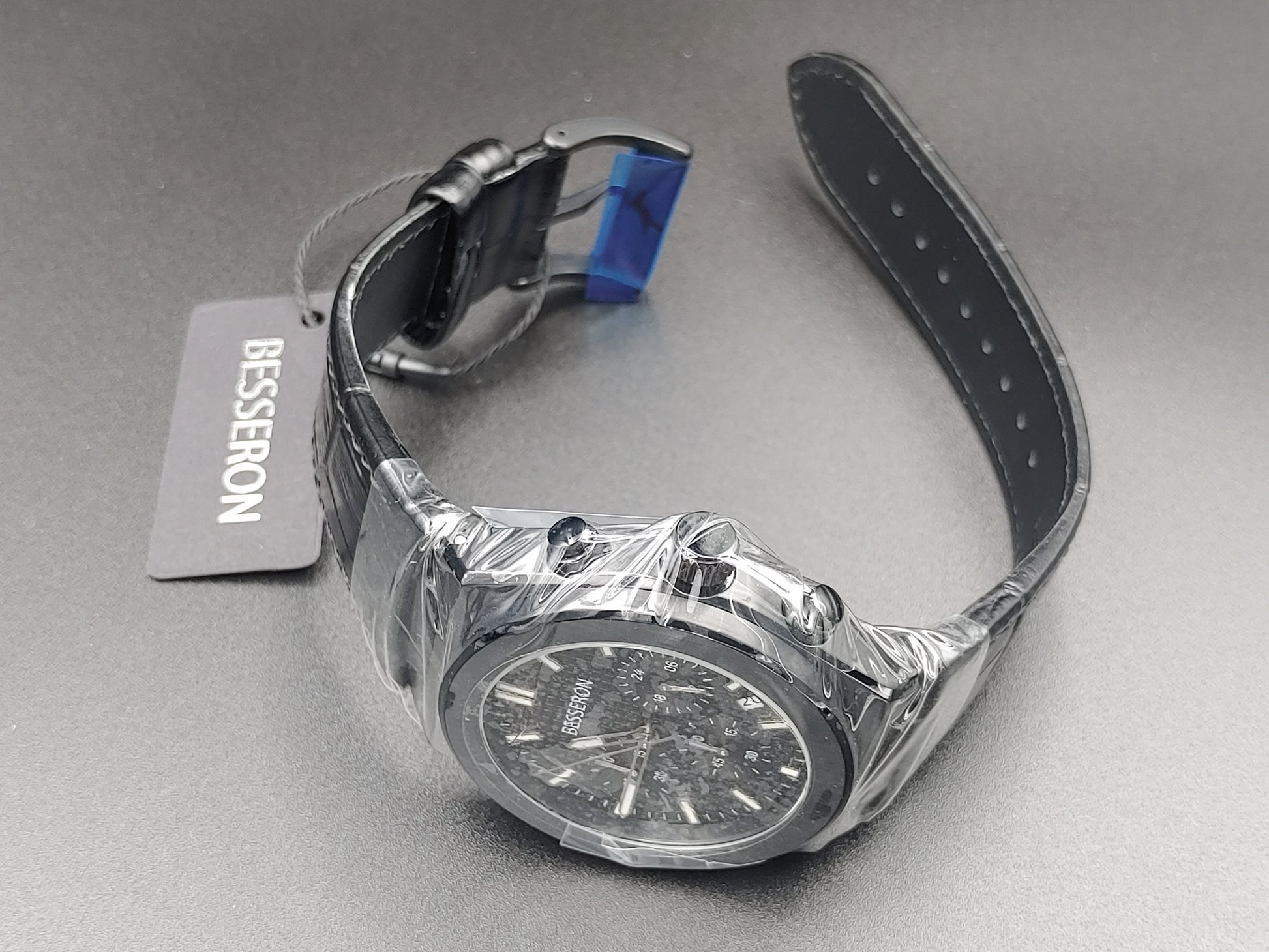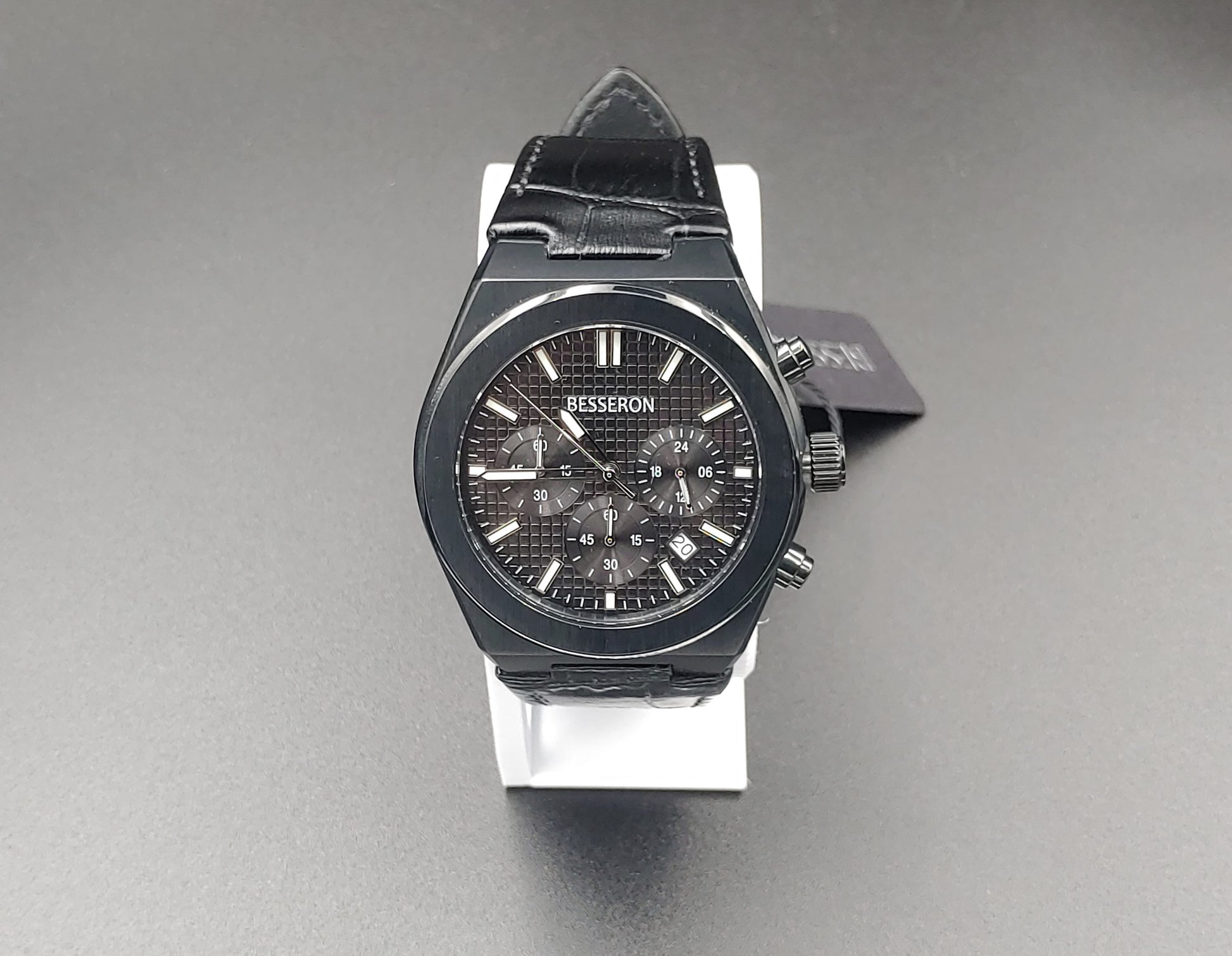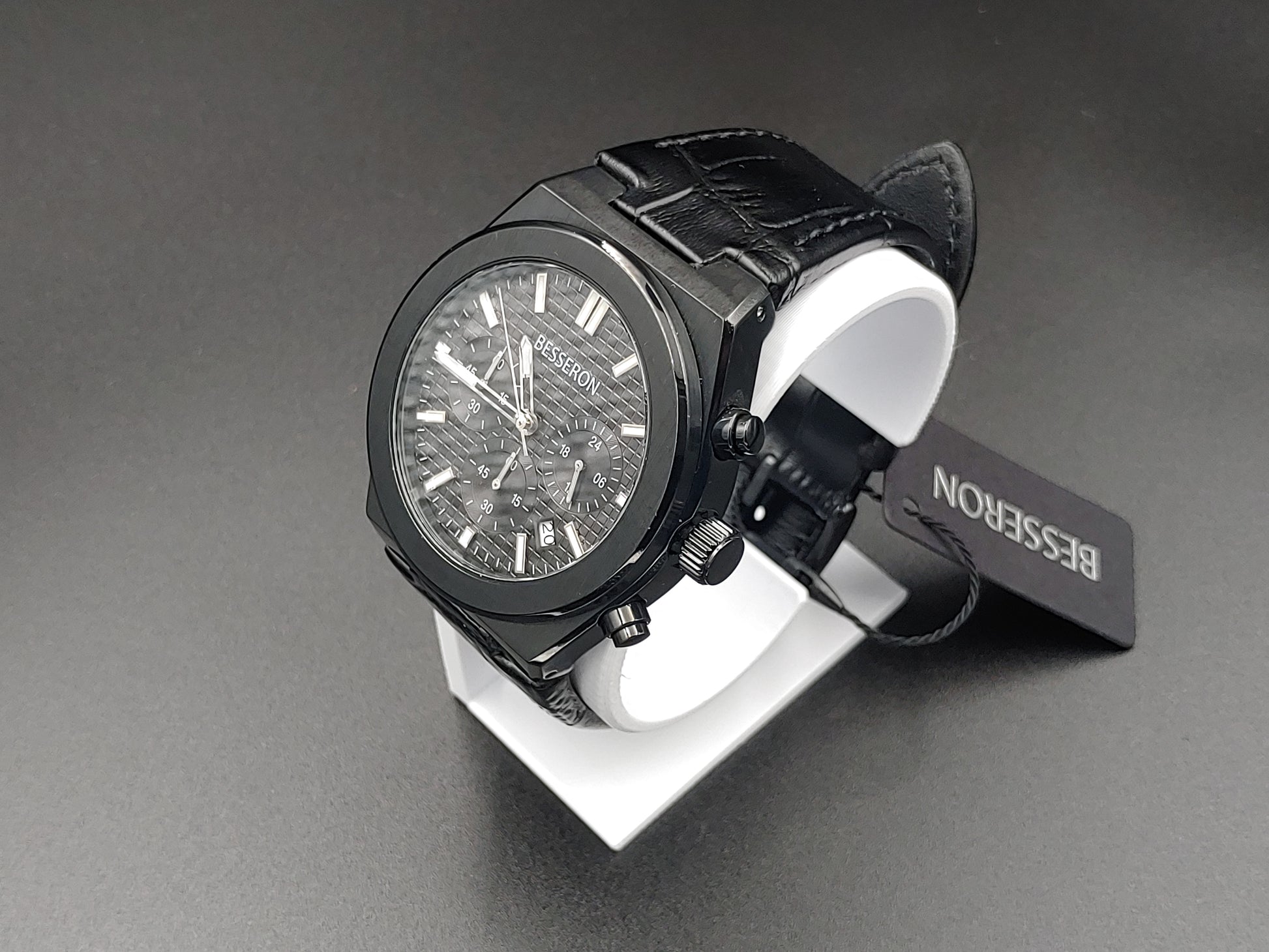Besseron Χρονόμετρο Μπαταρίας με Ημερομηνία Μαύρο με Μαύρο Δερμάτινο Λουράκι
