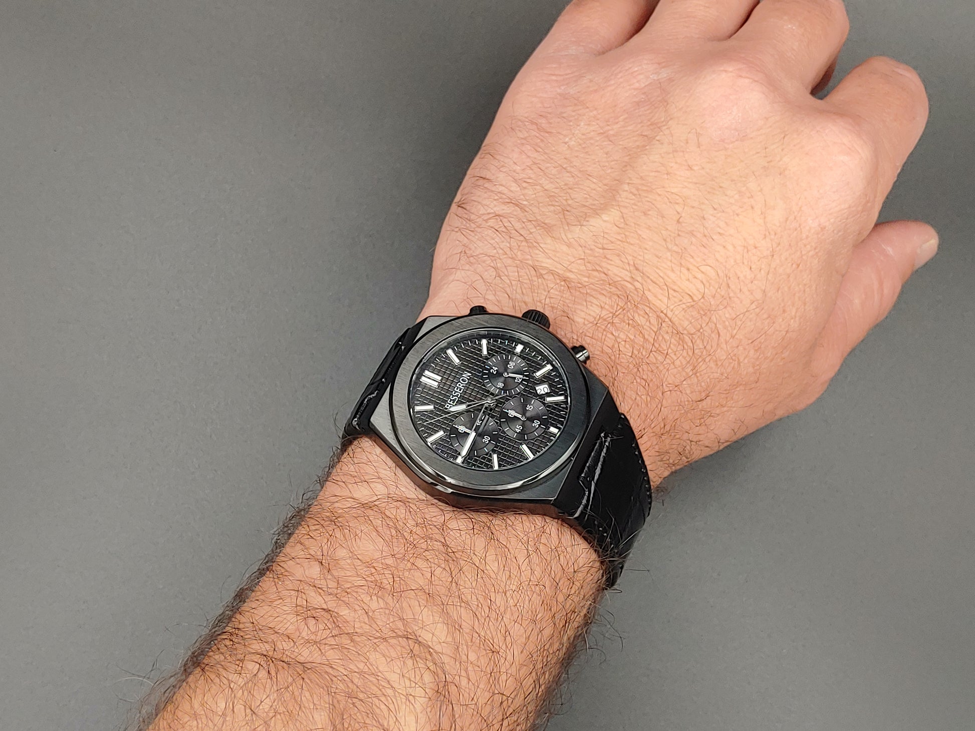 Χρώμα ρολογιού: Μαύρο καντράν με μαύρο Δερμάτινο λουράκι