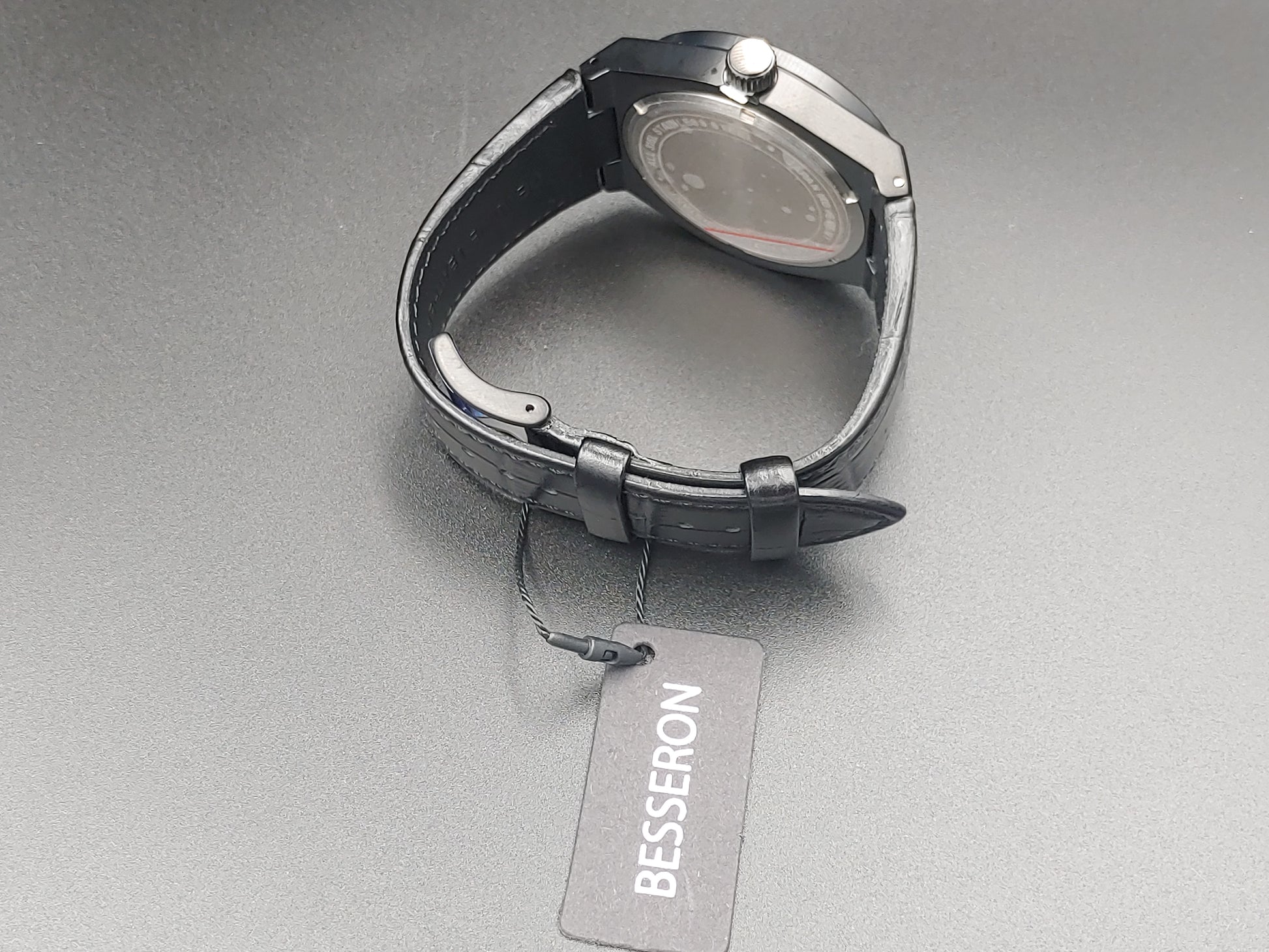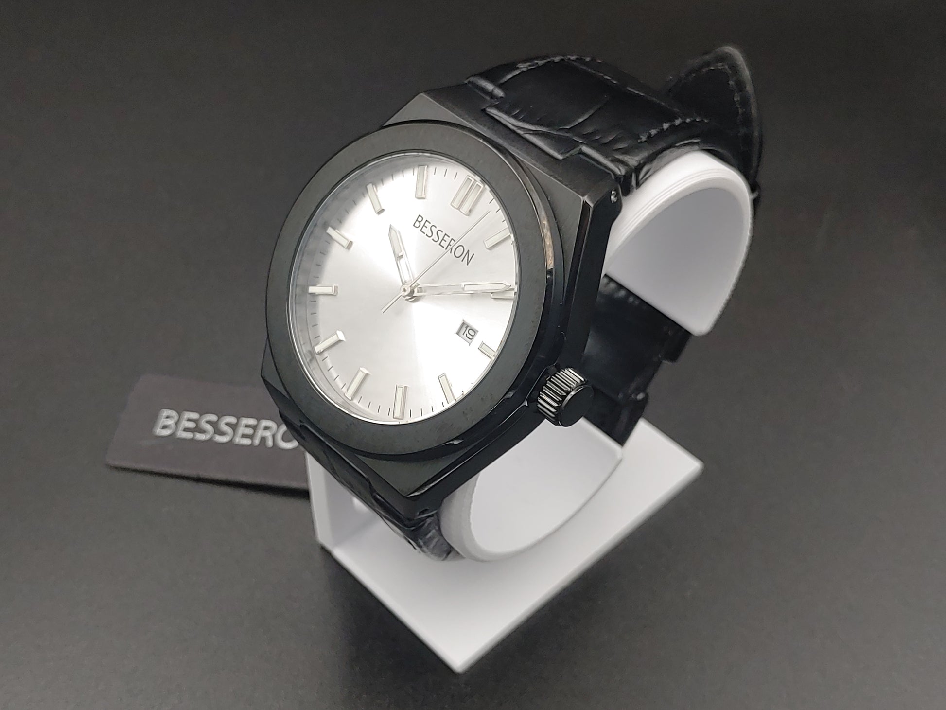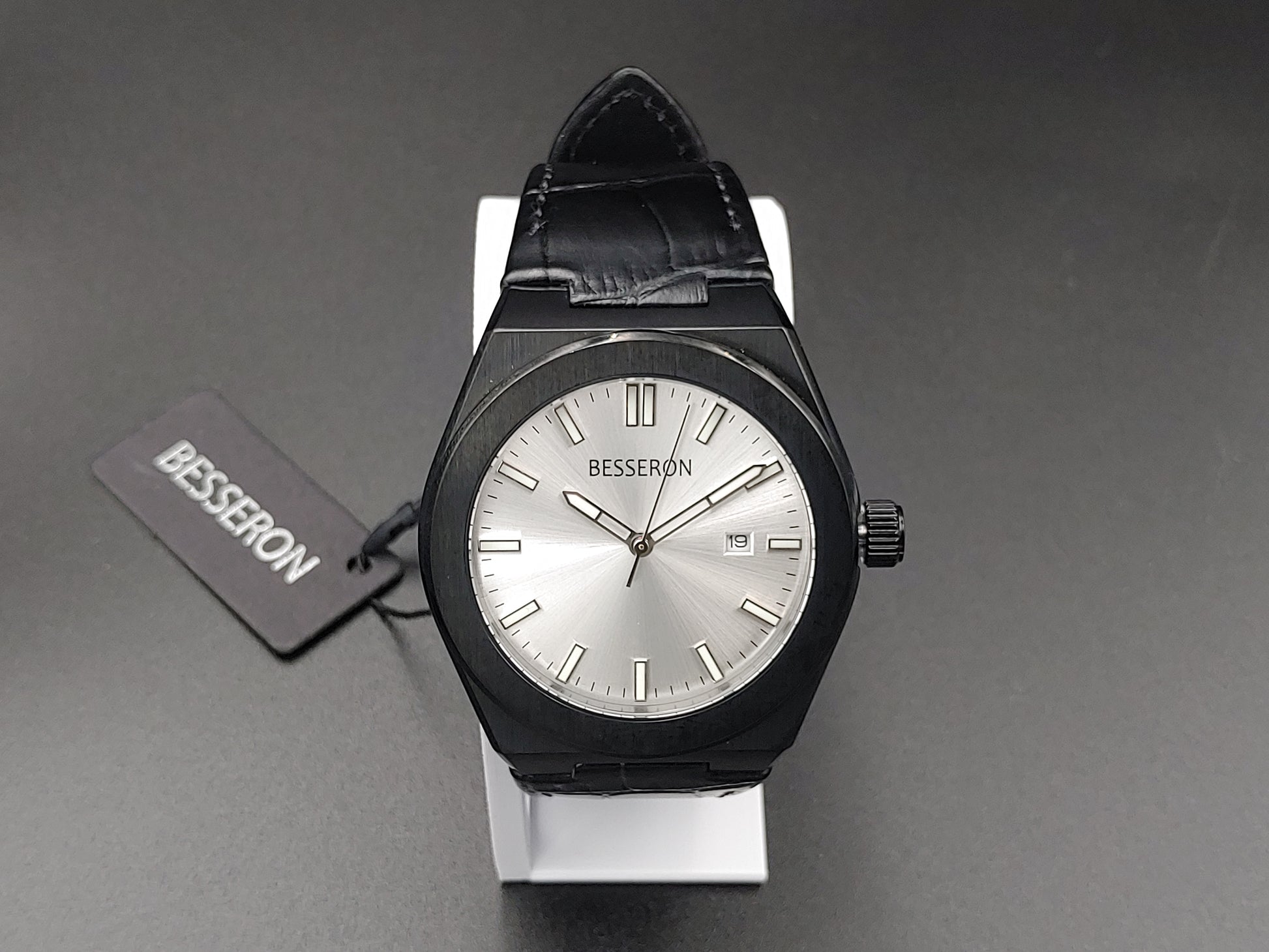 Besseron Ρολόι Μπαταρίας με Ημερομηνία Μαύρο με Μαύρο Δερμάτινο Λουράκι
