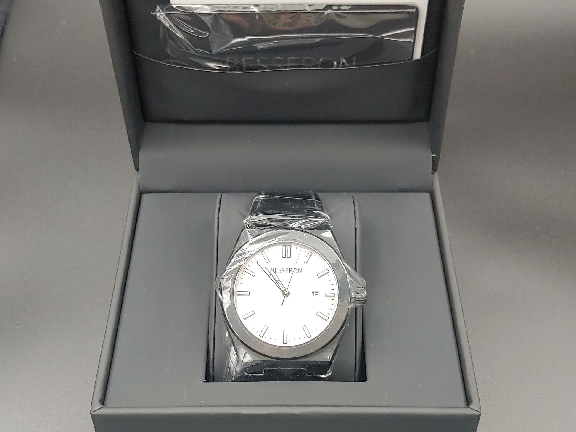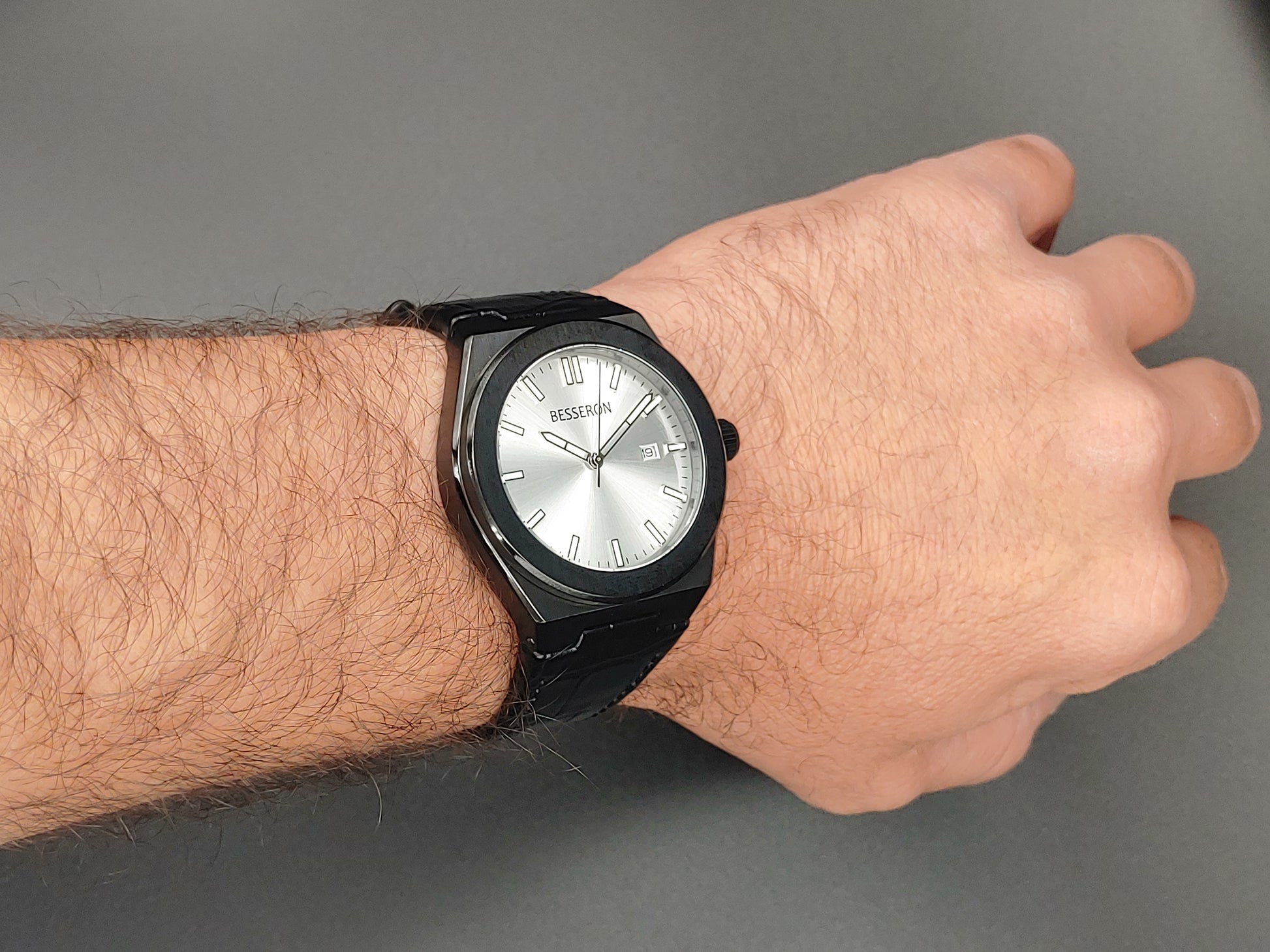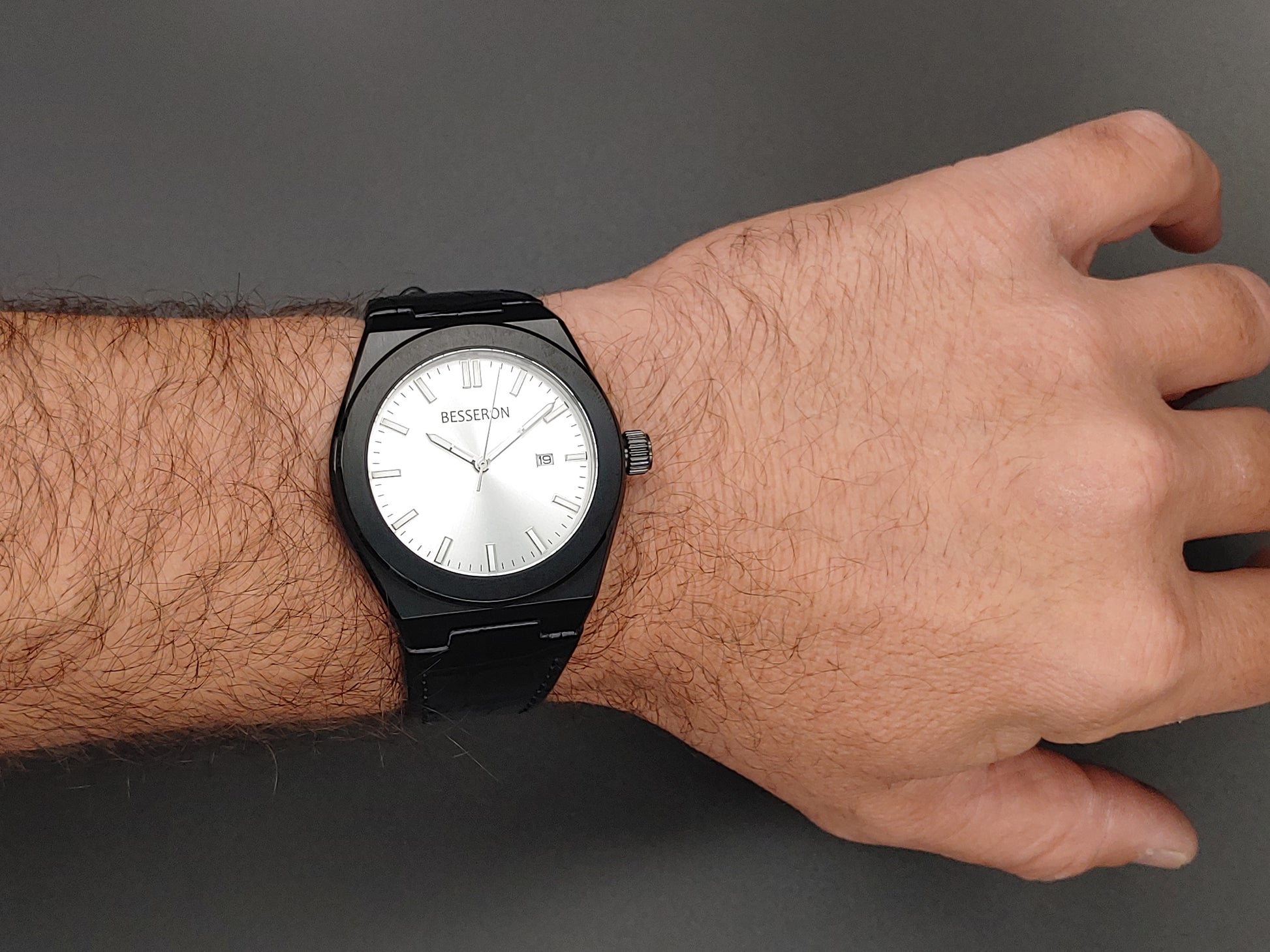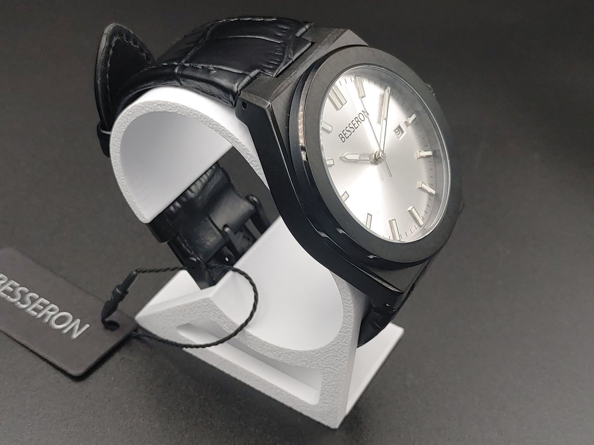 Besseron Ρολόι Μπαταρίας με Ημερομηνία Μαύρο με Μαύρο Δερμάτινο Λουράκι