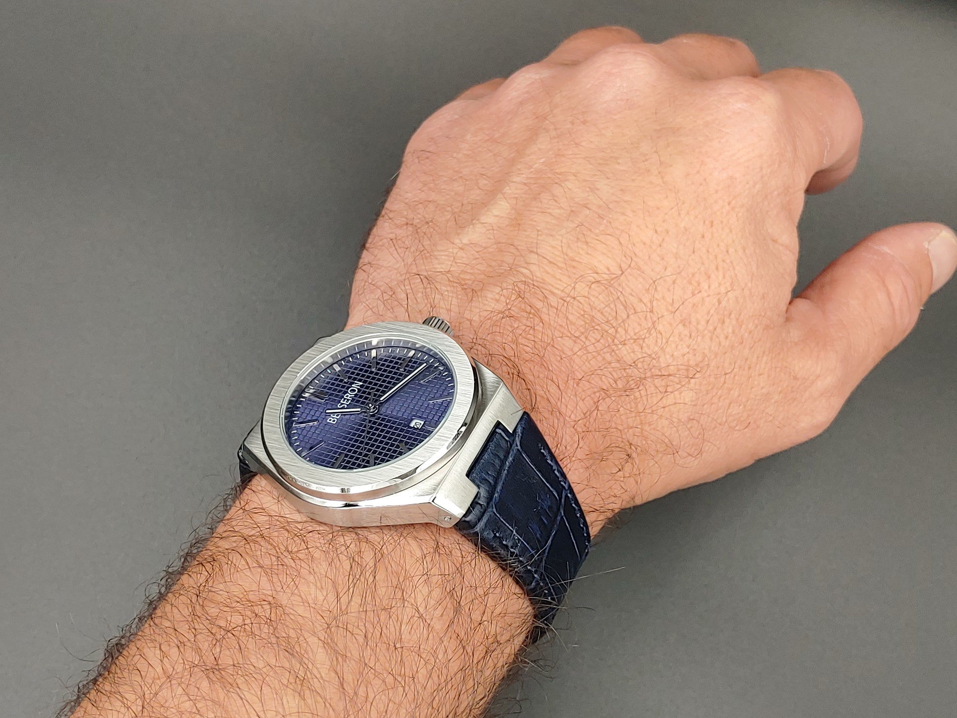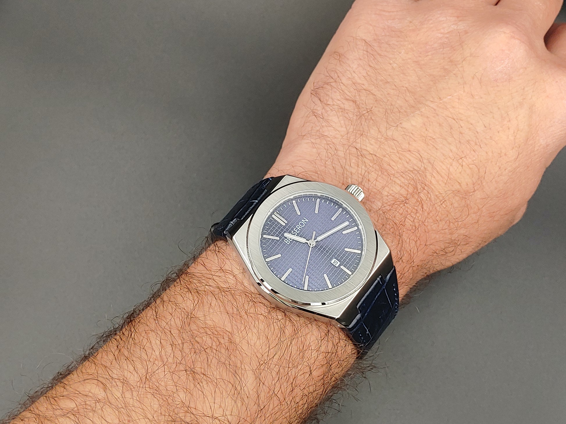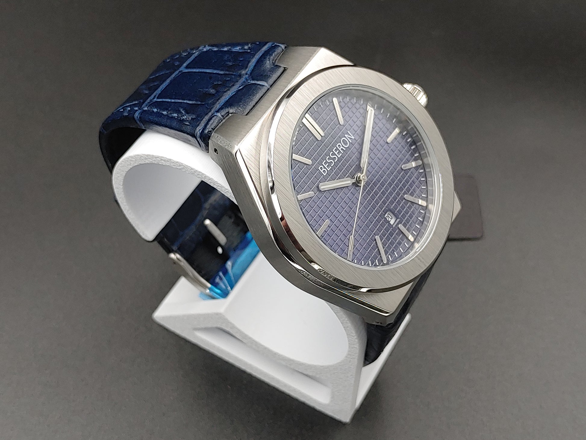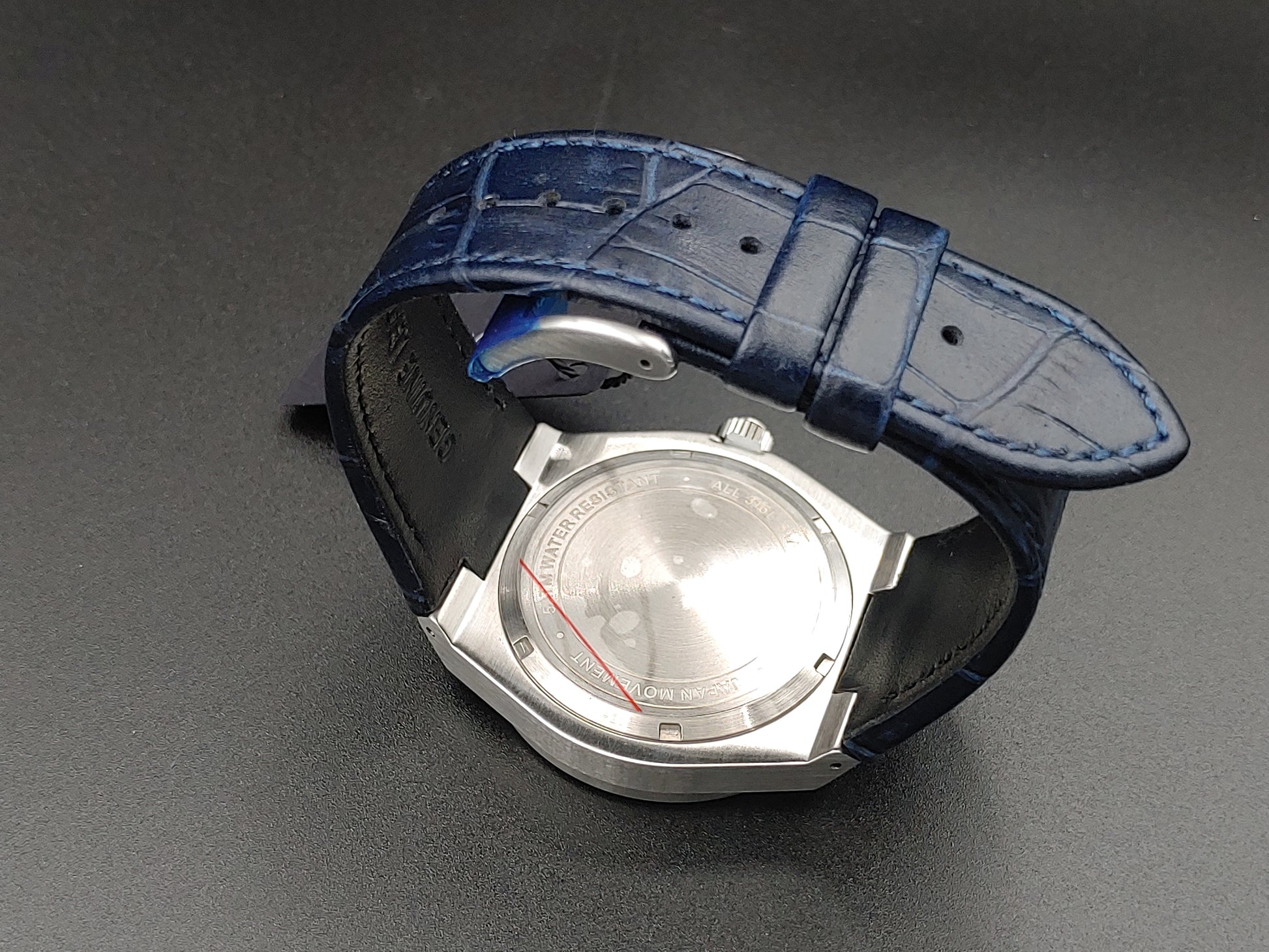 Χρώμα ρολογιού: Το χρώμα καντράν είναι Μπλέ με Σκαλιστά Τετράγωνα , το χρώμα του δερμάτινου λουριού είναι Μπλέ