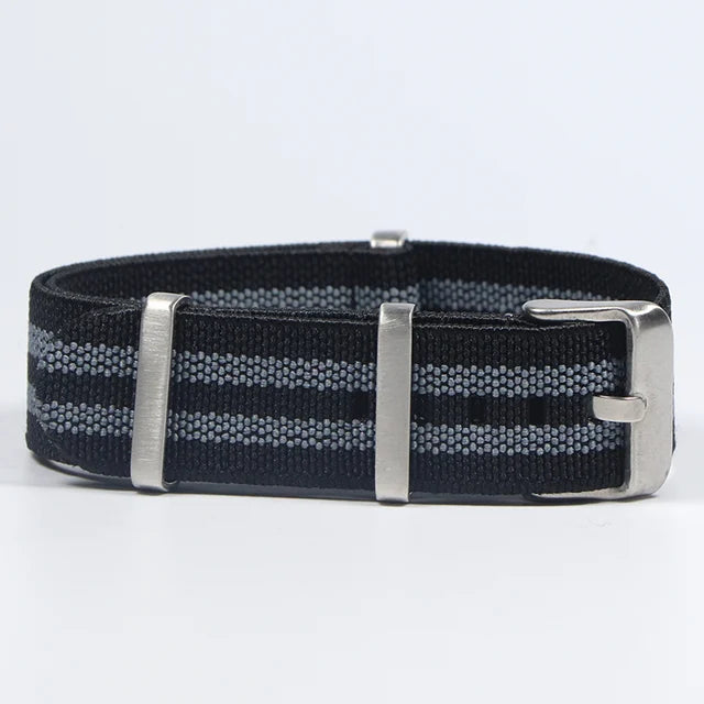 Μαύρο γκρι ελαστικό λουράκι Nato Ριγέ 18mm Χιλιοστά με αγκράφα