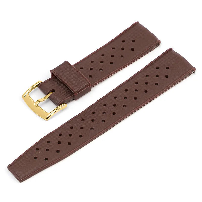 Καφέ λουράκι σιλικόνης 20mm χιλιοστών Diver αδιάβροχο τροπικό στυλ Με Χρυσή Πόρπη Quick Release Durable Long Life