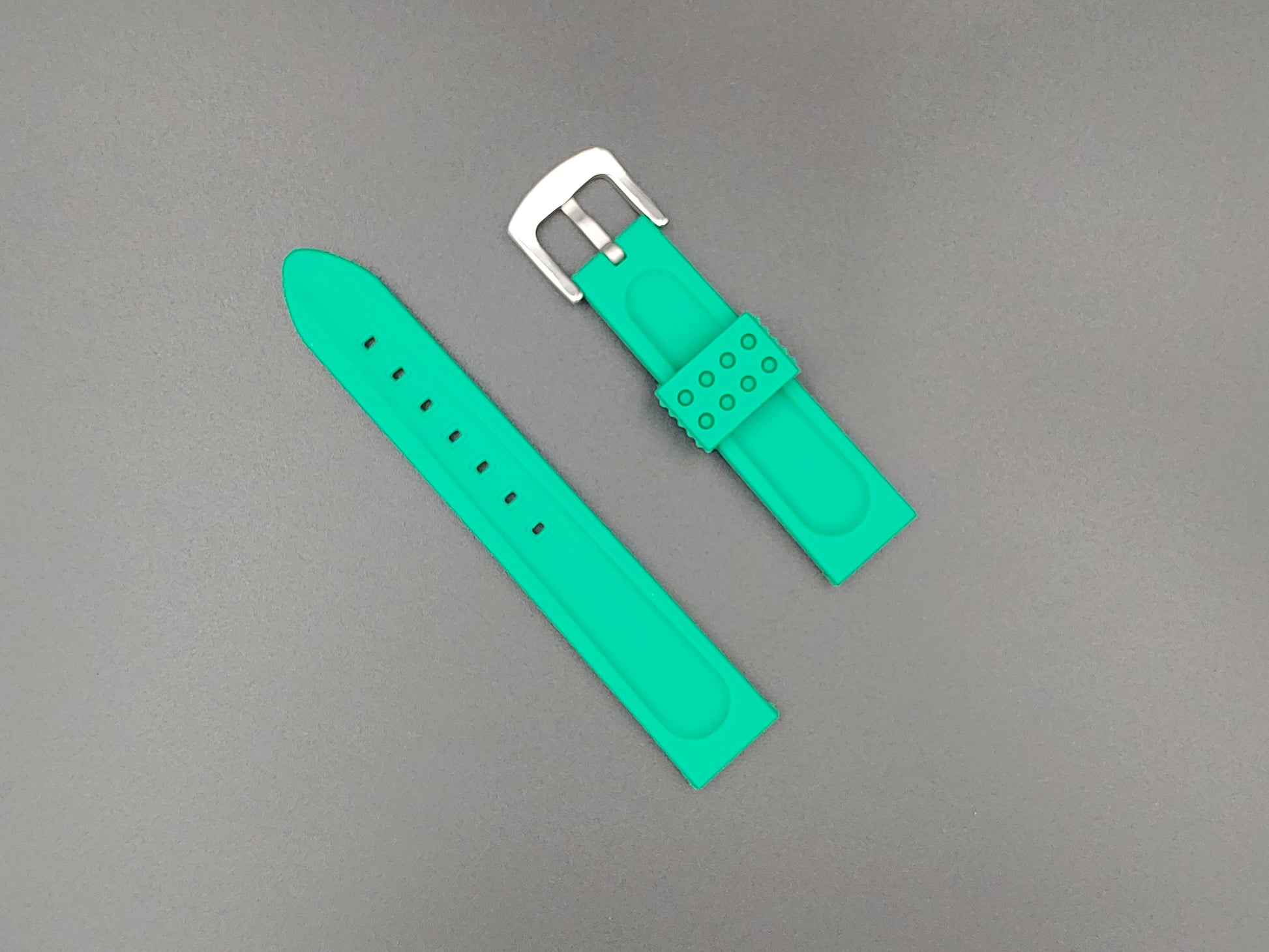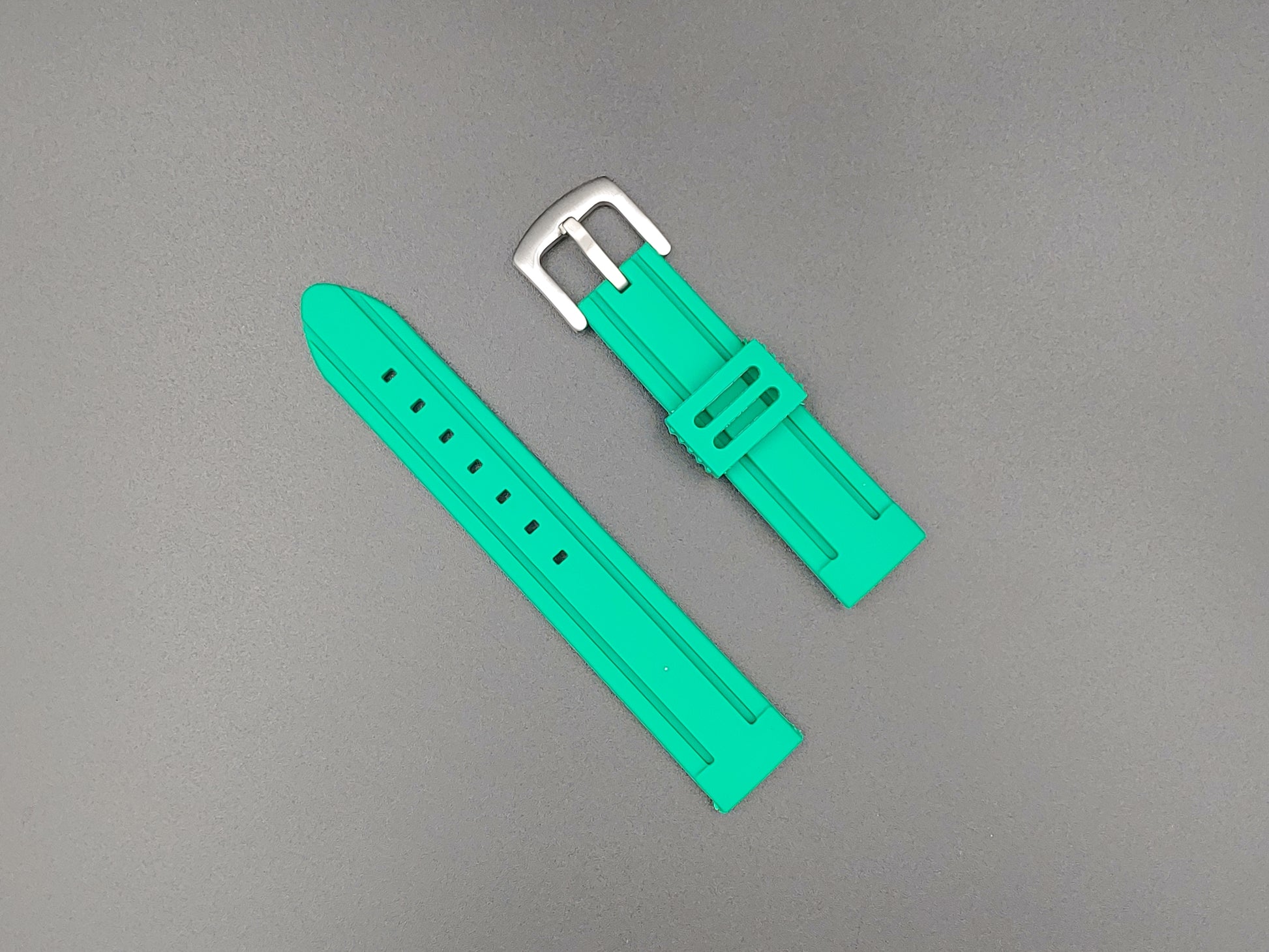 Ένα υπέροχο λουράκι σιλικόνης με ραβδώσεις, εξαιρετικά μαλακό και ανθεκτικό, διαθέσιμο σε Πράσινο χρώμα και το διαθέσιμο πλάτος είναι 22 mm