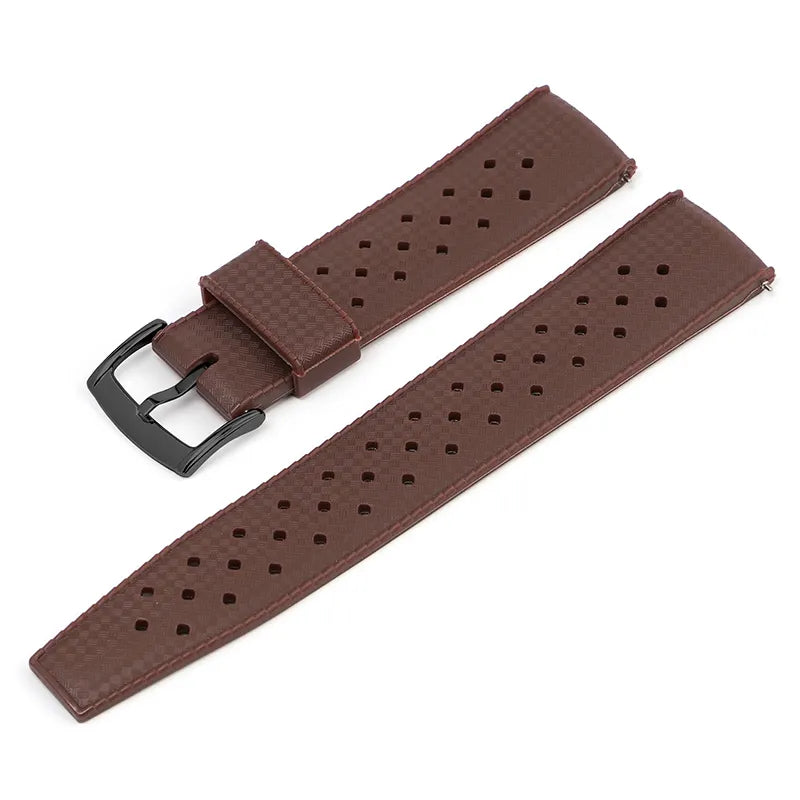 Καφέ λουράκι σιλικόνης 22mm χιλιοστών Diver αδιάβροχο τροπικό στυλ Με Μαύρη Πόρπη Quick Release Durable Long Life