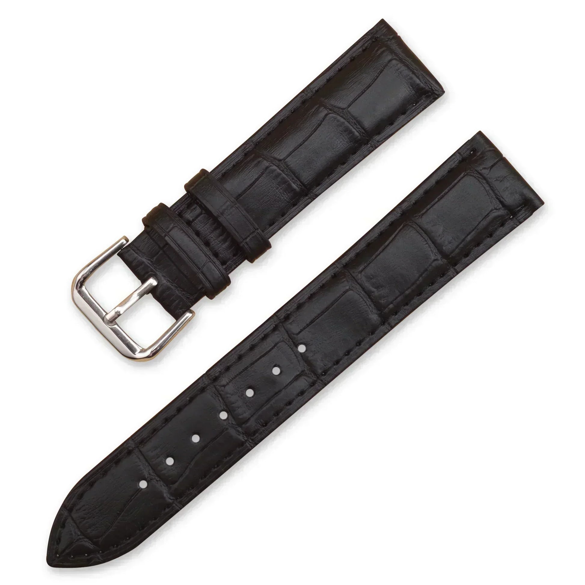 Δερμάτινο λουράκι 20mm Χιλιοστά Croc (Κροκόδειλου) σε μαύρο χρώμα με ασημί αγκράφα