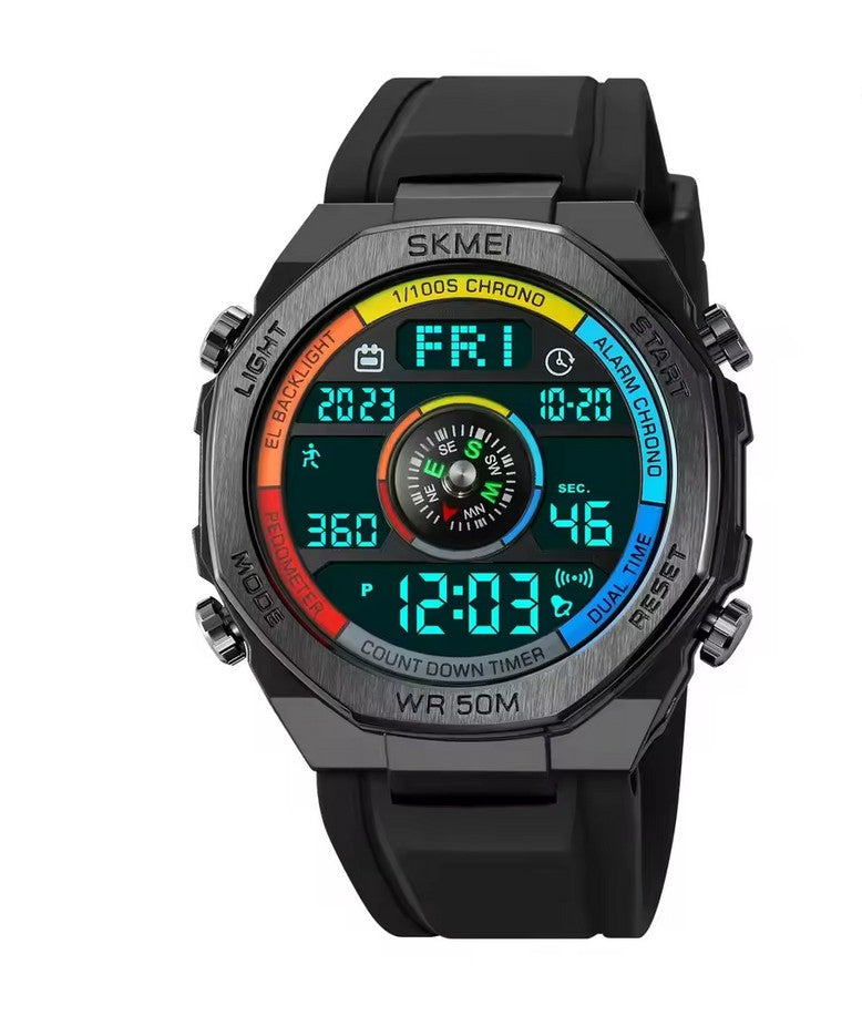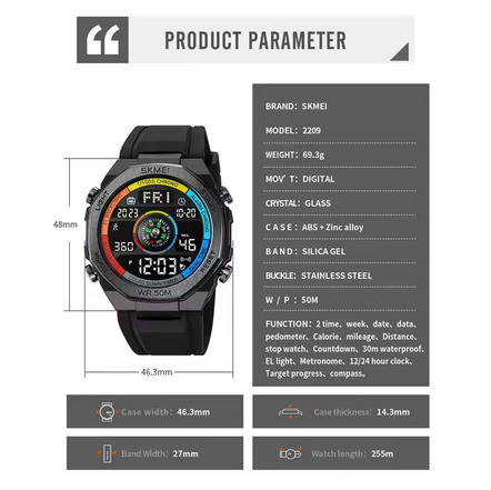 Skmei 2209 Αθλητικό Ρολόι με Λουράκι Σιλικόνης Πολλαπλών Λειτουργιών με Πυξίδα με Μαύρη Οθόνη Πολύχρομο Πλαίσιο