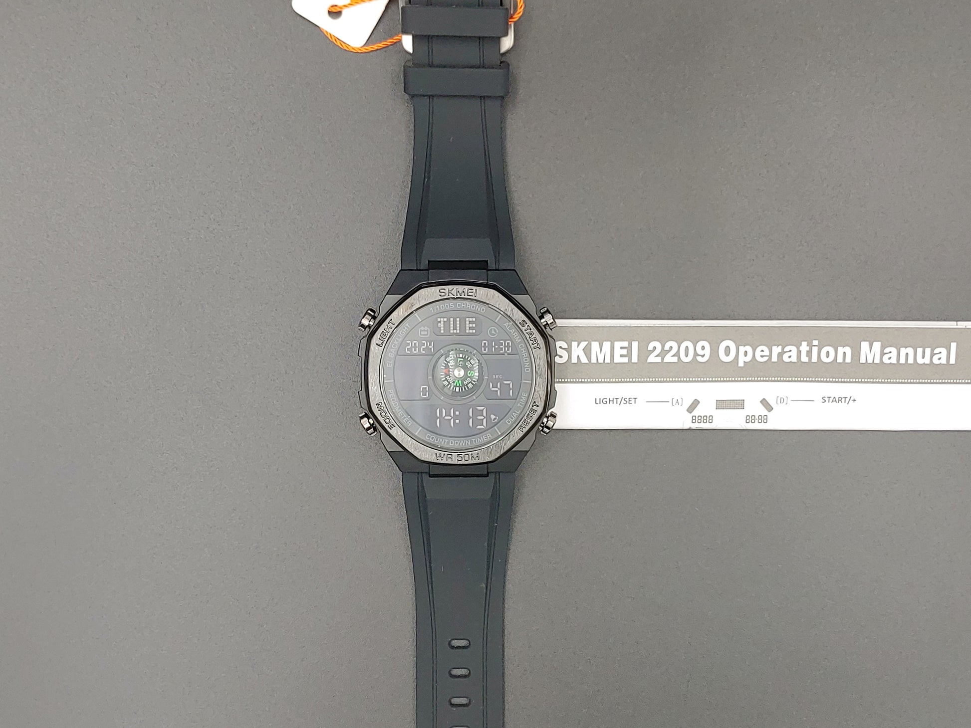 Skmei 2209 Αθλητικό Ρολόι με Λουράκι Σιλικόνης Πολλαπλών Λειτουργιών με Πυξίδα με Μαύρη Οθόνη